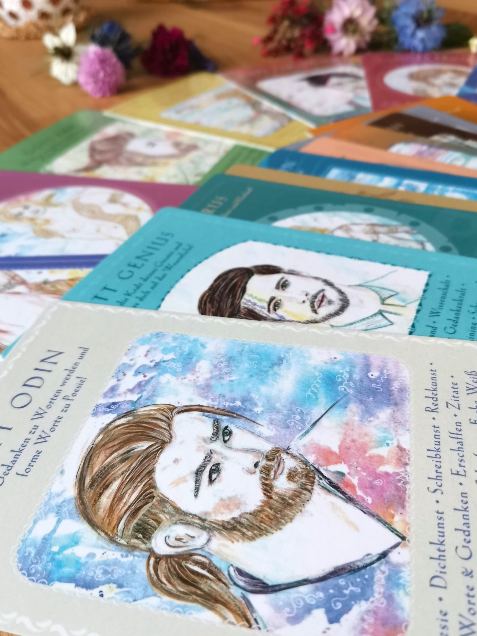 Das Kartenset besteht aus ausgewählten griechischen, römischen, ägyptischen, keltischen und nordischen Göttinnen & Göttern, die ich auf meine Weise zu Papier gebracht habe. Die Motive sind von mir von Hand gemalt und die kraftvollen Affirmationen und Botschaften haben sich dazu gefügt.